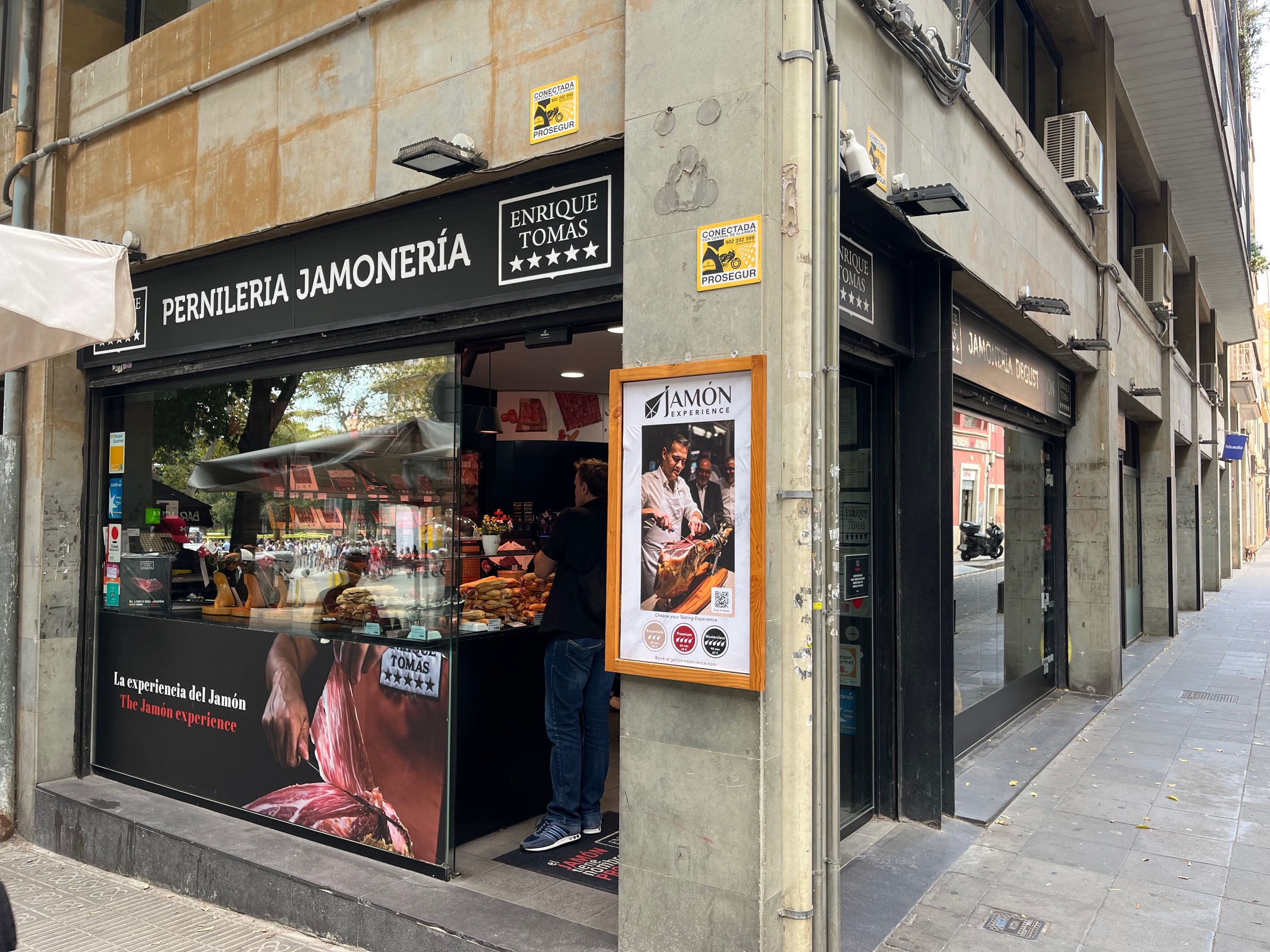 サグラダ・ファミリアから歩いてすぐの生ハム専門のレストラン「エンリケ・トマス (Enrique Tomas)」で本場の生ハムサンド、ボカディージョをいただきます。