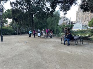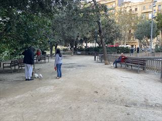 地元の人が犬を連れて散歩をしたり、ベンチでコーヒーを飲んでいたりと、観光地というよりも“日常のバルセロナ”を感じられます。