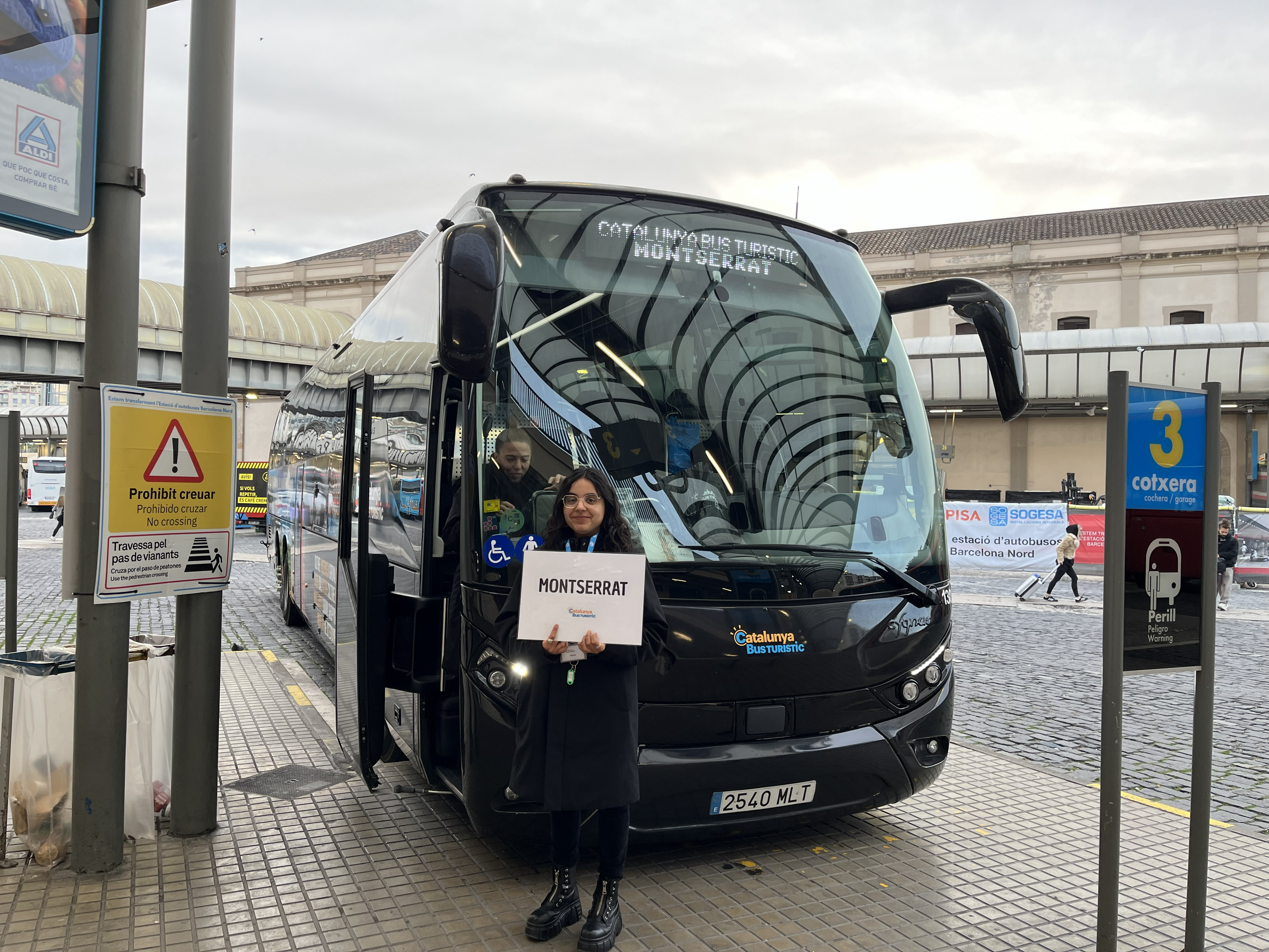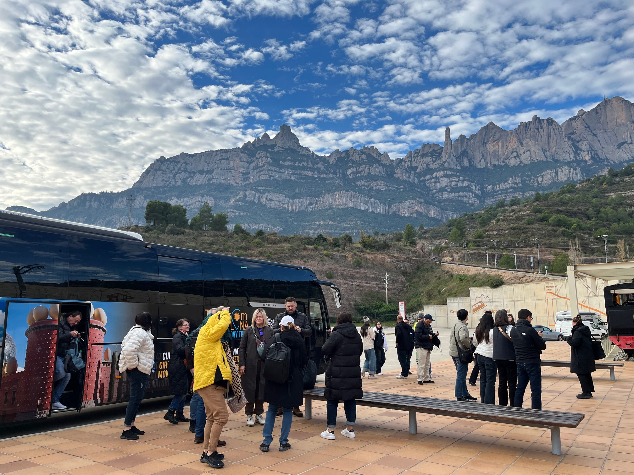 まずは地下鉄Arc de Triomf駅近くの北バスターミナルに集合。「みゅう」のボードを持った日本語ガイドと合流し、バスでモンセラットへ向かいます。