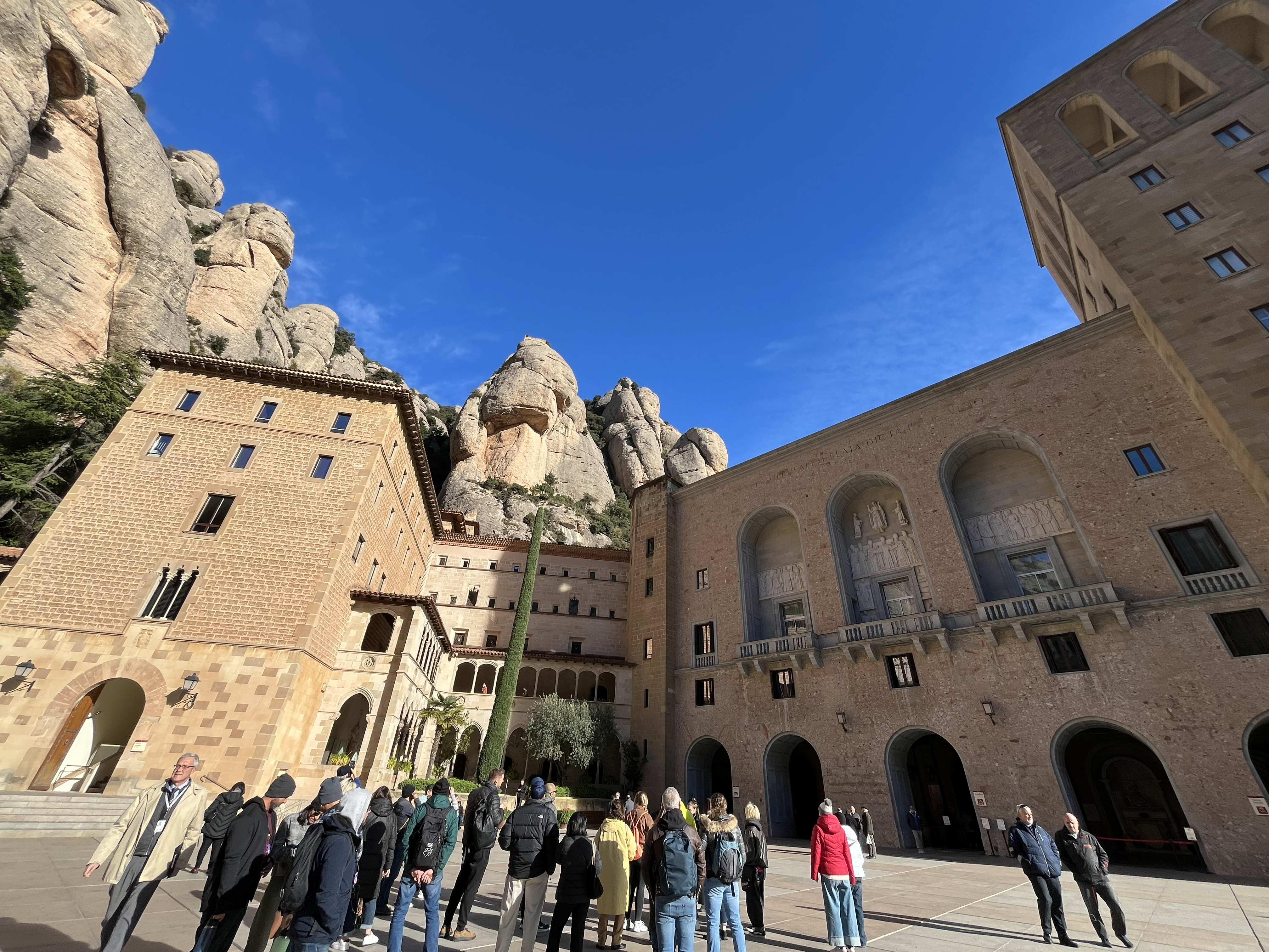 モンセラットに到着後、ケーブルカーで中腹エリアに上がり、ガイドとともに聖堂周辺を散策した後、自由行動が開始されます。