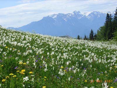 レマン湖畔のモントルー周辺の山々に群生し、モントルー~ヴヴェイ地方の山の斜面 が遠くからも真っ白にみえるほど、花が群生していることから「五月の雪」 と呼ばれ、昔から愛されてきました。