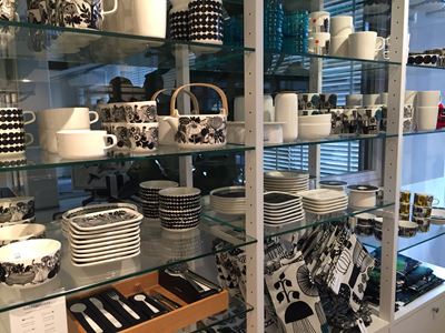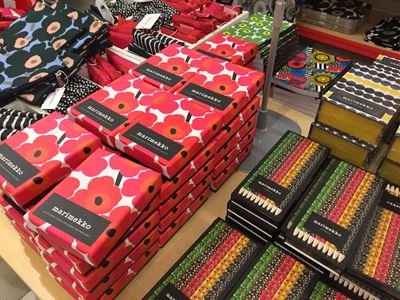 ツアー最後は、フィンランドを代表するブランド「マリメッコ」のアウトレットショップへ。鮮やかな色使いとパターンが特徴のマリメッコデザインの洋服や食器などが、ところ狭しと並べられています。工場に併設されたアウトレットなのでお値段もお手頃価格。免税手続きもできます。