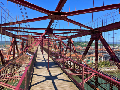 世界発の運搬橋として知られるビスカヤ橋。橋にぶらさがったゴンドラで対岸まで荷物や車、人を運んでいきます。この橋は1893年に作られたもので、当時としては画期的なアイデアで作られました。世界遺産にもなっているビスカヤ橋は、ビルバオに来たら訪れるべきスポットのひとつです。