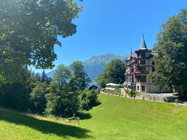 ドラマでは中隊長の留学先の音楽学校の舞台となっているグランドホテル・ギースバッハ。22ヘクタールの公園の中に位置しています。そのすぐ隣にはブリエンツ湖の山から、14層になり、湖に轟音をたてて流れ込む落差500mのギースバッハ滝があります。森の中にある滝には遊歩道があり、裏見の滝のほか、さまざまな角度から雄大な滝をご覧いただけます。