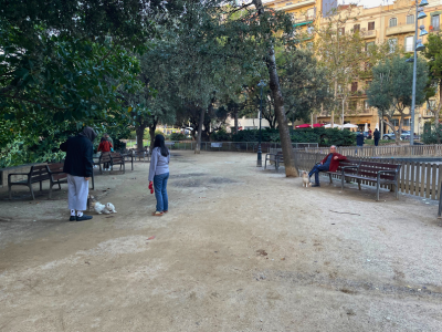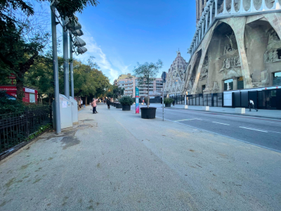 地元の人が犬を連れて散歩をしたり、ベンチでコーヒーを飲んでいたりと、観光地というよりも、"日常のバルセロナ"を感じることができます。荘厳なサグラダ・ファミリアのすぐそばに、穏やかな日常があるのが、バルセロナの魅力です。