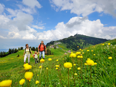 1871年建設のリギ鉄道はヨーロッパ最古の登山鉄道。リギ・クルムからは中央スイス地方アルプスをはじめ、グラールスやベルナーオーバーラントの山々が連なる景観を眺めることができます。リギ・クルムホテルは1816年にスイス初の山頂ホテルとして建てられました。