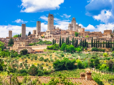 「塔の街」として知られる世界遺産の村。空に向かってそびえ立つ中世の塔と、周囲を囲むブドウ畑のパノラマはトスカーナを象徴する風景です。石造りの広場で名物のジェラートを楽しむのも旅の最高の思い出になるはずです。
