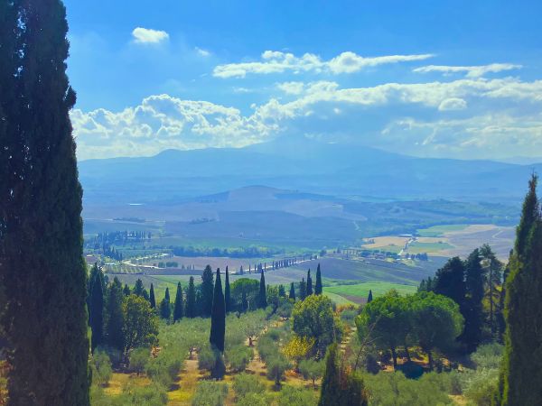 街自体が世界遺産であり、背後に広がるオルチャ渓谷もまた世界遺産という贅沢な地。城壁の遊歩道からは絵画のような絶景を一望できます。ルネサンスの理想が詰まった街並みと波打つ丘陵地帯のコントラストは、トスカーナで最も写真映えする風景です。