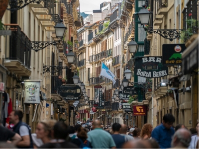 重厚な石造りの城壁の上にはパラドール(歴史的建造物を利用した国営ホテル)のある人気観光地。赤や緑のバスクらしい彩りの町には世界一のバルがある美食の街でもあります。