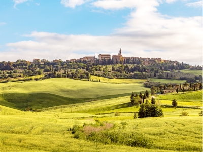 世界中から観光客があつまるフィレンツェ。町のシンボルで通称ドゥオモと呼ばれるサンタ・マリア・デル・フィオーレ大聖堂ではその大きさと美しさに圧倒されます。「ビーナスの誕生」などのルネッサンス期の美術品を集めたウフィッツィ美術館はいつも入場待ちの長蛇の列ができる人気観光スポットです。アルノ川にかかるヴェッキオ橋はその欄干部分がお店になっている変わった橋。美しいフィレンツェの町並みを一望できるミケランジェロ広場も必ず訪れたい場所です。家々のオレンジ色の屋根とドゥオモの姿を高台から一望することができます。