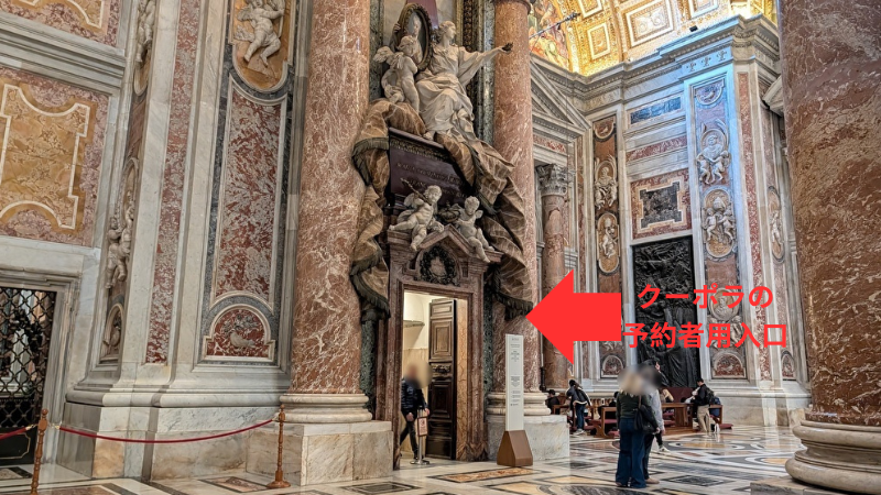 クーポラの予約時間の90分前からサンピエトロ大聖堂へ入場することが可能です。