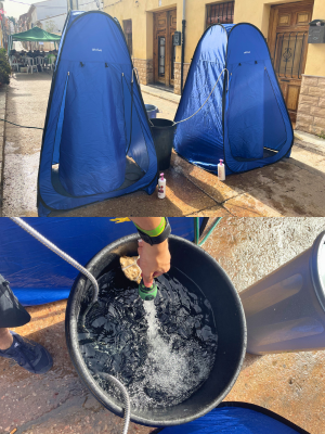トマティーナ会場到着後、日本語アシスタントがトマト祭り開催前にシャワーのある場所をご案内するので、お祭り終了後も迷うことなくシャワーへ直行できます。